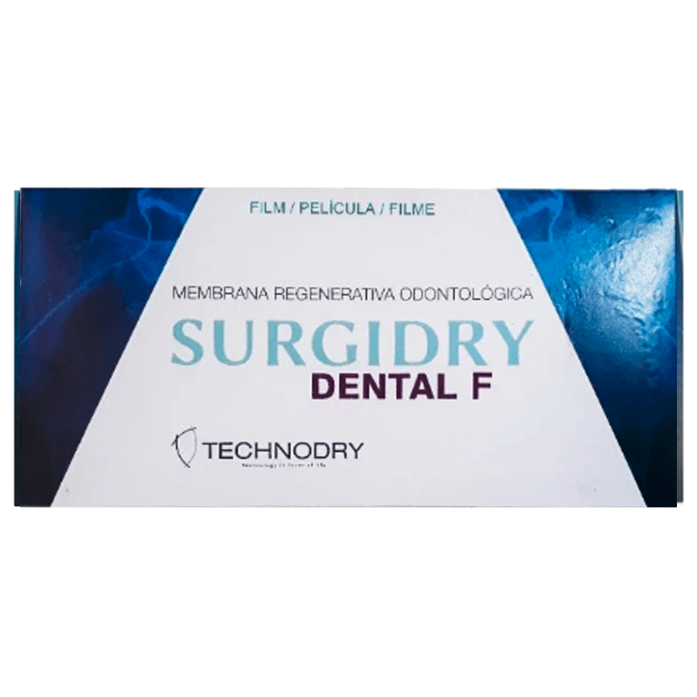 SURGIDRY DENTAL MEMBRANA é uma de Matriz Orgânica de Colágeno Tipo I Polimerizado e Purificado com estrutura Fibrilar comprimida formando um filme com estrutura homogênea de origem bovina, e reabsorvível no período de 90 dias.